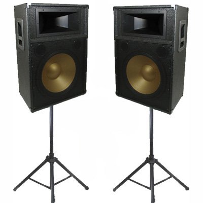 New Studio Speakers 15" Two Way Pro Audio Monitor Pair and Stands DJ Set for PA Home or Karaoke PPT15CSET1